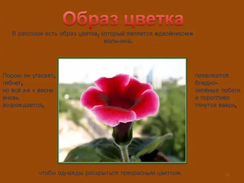 Почему нет страшных картин сиротства, трудной жизни? Цель автора: показать формирование характера героя. Всё лучшее в нас прорастает в мире детства, где царят доброта, любовь, милосердие, уважение. А Витя похож на оживающие весной цветы, он тоже тянется к солнцу, свету, теплу.