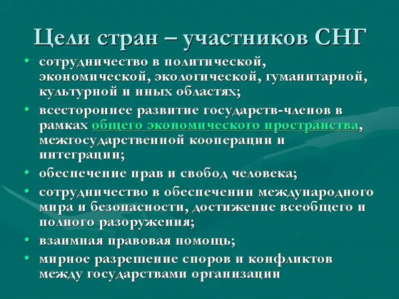 - всестороннее развитие государств-членов в рамках общего экономического пространства, межгосударственной кооперации и интеграции;