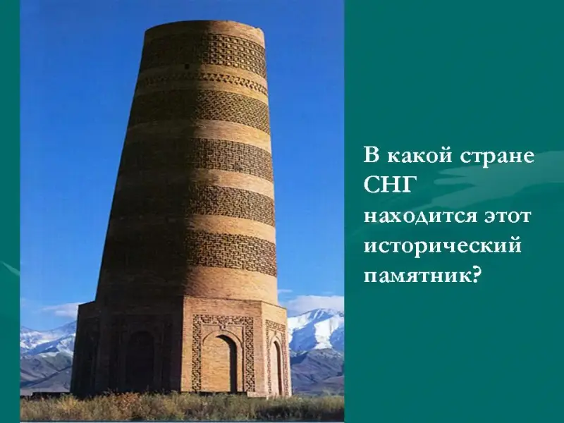 5. В какой стране СНГ находится этот исторический памятник? (Киргизия, Башня Бурана)