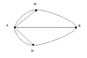А, В - острова, M, N - берега, а семь кривых - семь мостов.