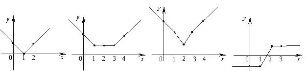 1) f(x)=|x - 1|. Вычисляя функции в точках 1, 0 и 2, получаем график, состоящий из двух отрезков (рис.1);