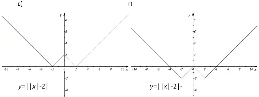 в) графики простейших функций, содержащих модуль