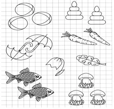 - Найти и раскрасить те предметы, которых по два.