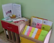 В каждой возрастной группе для родителей организованы мини-центры, в которых они могут найти полезную информацию об особенностях психического развития детей, рекомендации по взаимодействию с ребенком "группы риска". Данный материал размещён в энциклопедиях, шпаргалках, памятках. Также здесь размещены игры, пособия, которые родители могут взять домой для того, чтобы поиграть с ребёнком, возможно, закрепить те навыки и умения, которые их сын или дочь получили в детском саду.