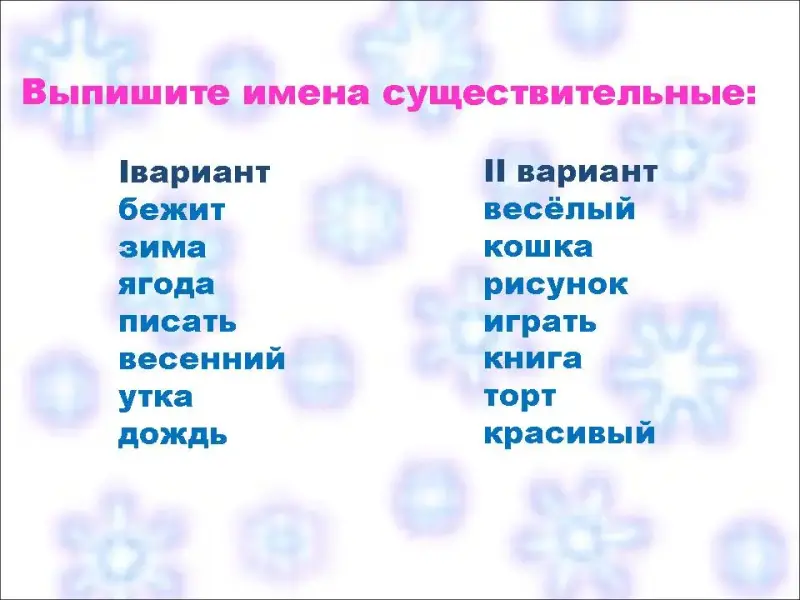 - Выпишите слова, которые обозначают предметы (имена существительные).