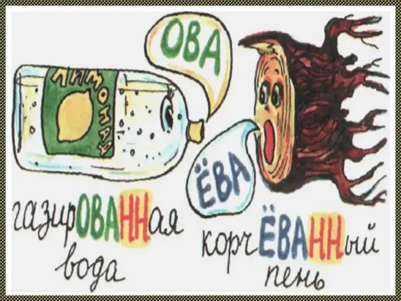 - если в слове есть суффиксы - ова, -ева (Слайд №8);