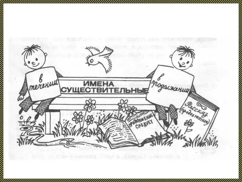 Слайд № 6.Этот рисунок называется "Носики-курносики", суффикс "задирают" носики, так как пишутся с двумя Н.