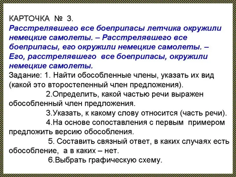 Остальные слушают, делают краткую запись в тетрадях выводов о каждом условии обособления.