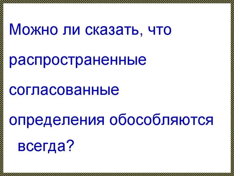 (СЛАЙД № 25) - Можно ли сказать, что распространенные согласованные определения обособляются всегда? (Нет, не обособляются, если стоит перед определяемым словом - существительным.)
