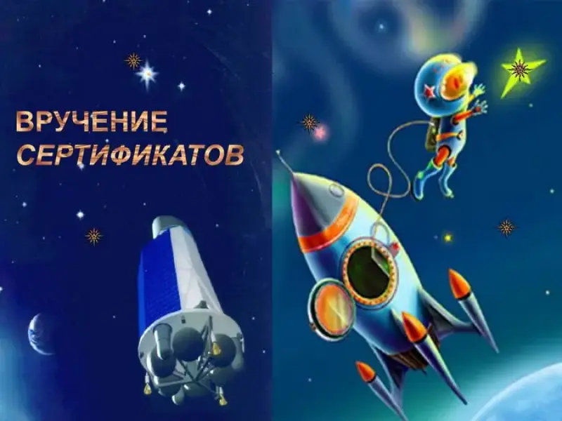 Оборудование: Презентация с фонограммами песен А. Пахмутовой "Знаете, каким он парнем был!", "Созвездие Гагарина", фонограмма космической музыки, документальный фильм "Гагарин", жетоны. Сертификаты участникам.