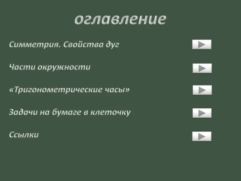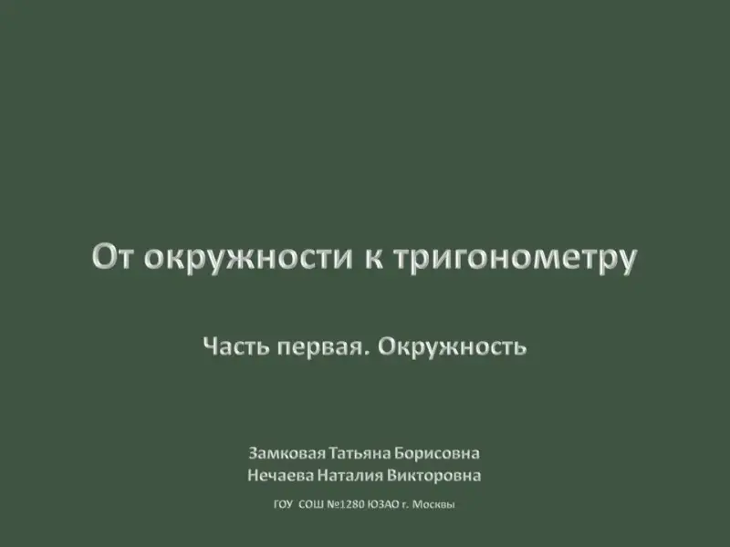 Серия из нескольких фрагментов уроков с сопровождающими презентациями содержит большое количество упражнений, дидактических игр, опорных макетов для введения, многократного повторения и обновления понятий, знаний и умений. Простая, доступная пропедевтика основ тригонометрии "От окружности до тригонометра" средствами презентации в программе Microsoft PowerPoint с настройками анимации предназначается для работы с учащимися на нескольких уроках в 8, 9, 10-х классах. В зависимости от целей уроков, уровня подготовки конкретного класса используются разные слайды, в настройках анимации делаются актуальные акценты; слайды можно использовать как основу для новой презентации.