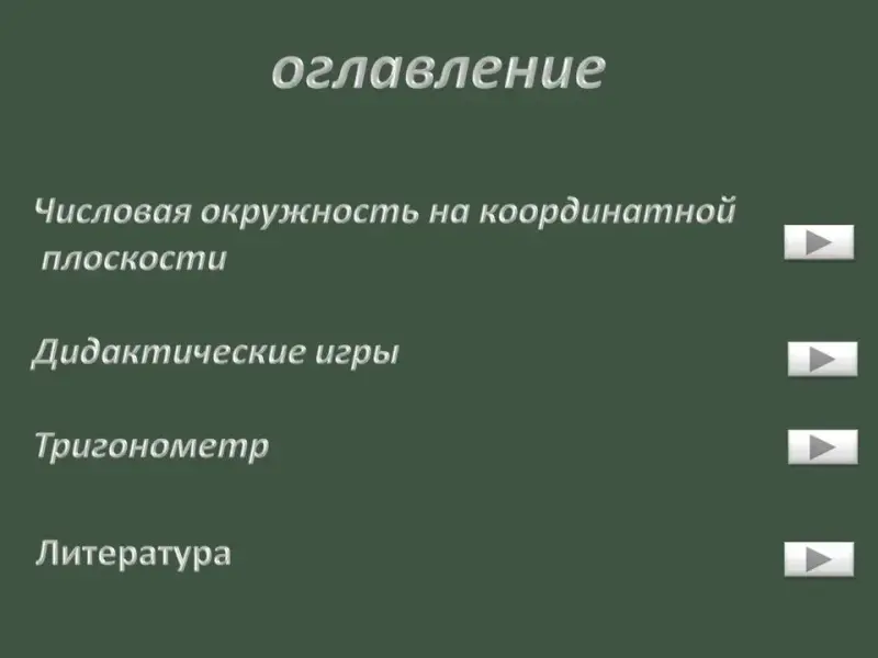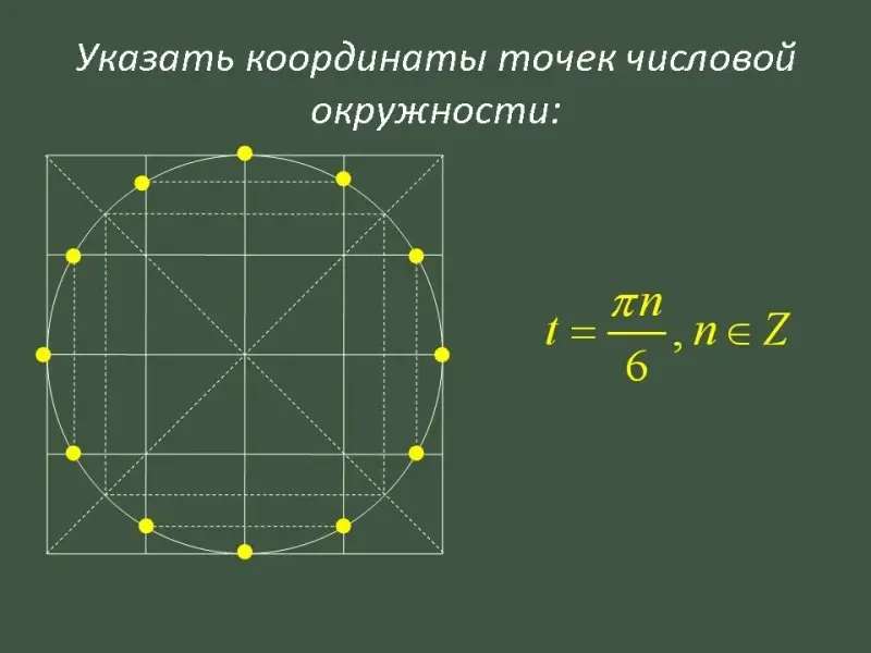 Числовая окружность как модель действительных чисел (симметрия точек на числовой окружности, аналитический и геометрический смысл слагаемого и др.). Подборка разнообразных упражнений поможет учащимся усвоить большой поток новой информации за короткое время. Закрепление определения числовой окружности. Отработка навыков нахождения точек по координатам и координат по точкам, аналитической записи дуги и др. Дидактические игры, тренажеры.