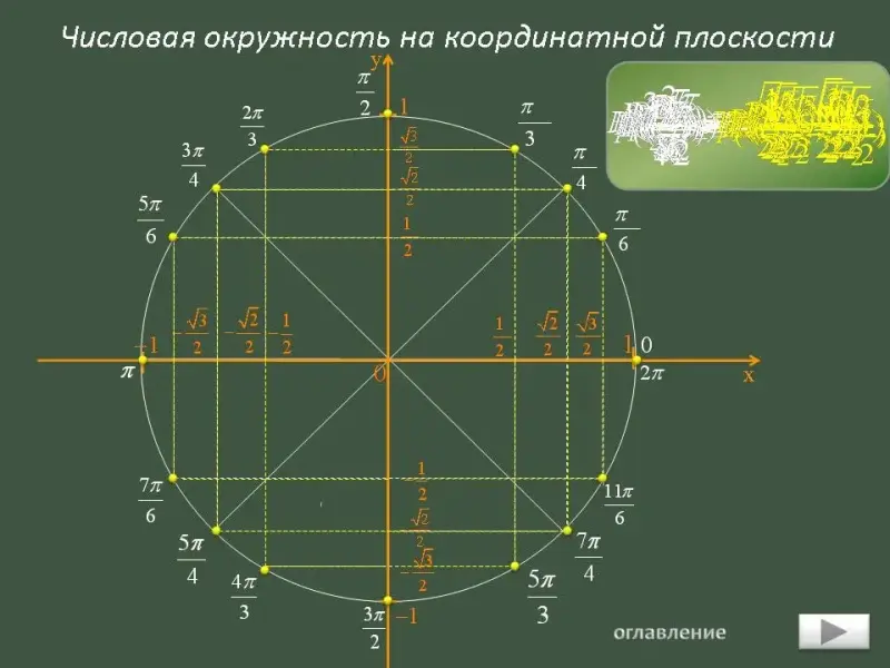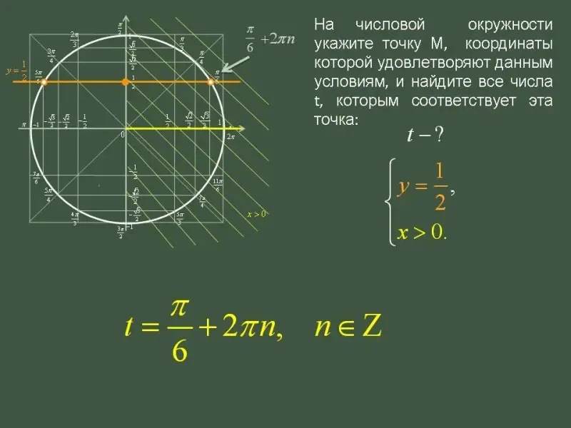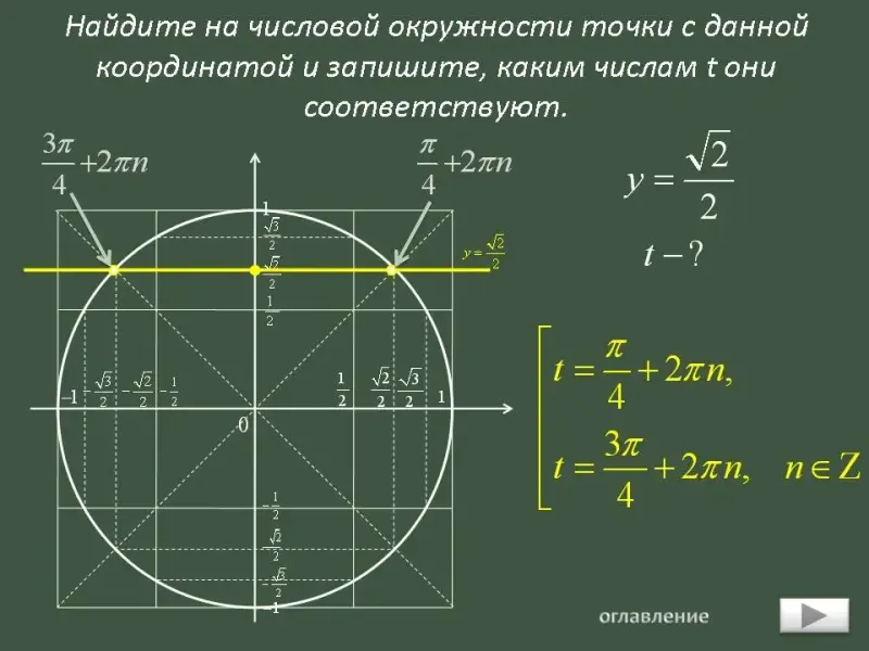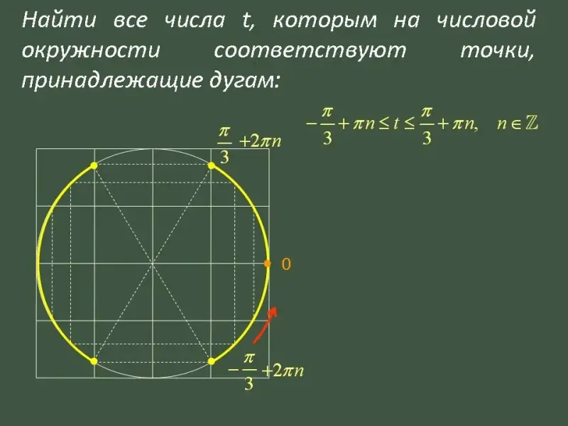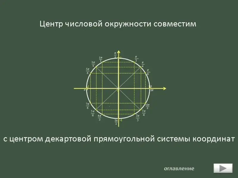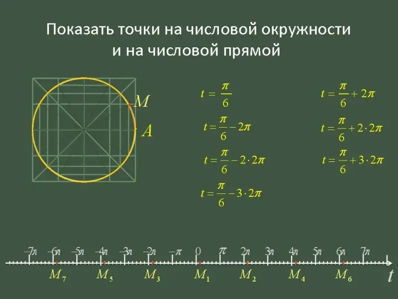 Фрагмент урока №2. Числовая окружность (10-й класс, алгебра и начала анализа, УМК А. Г. Мордковича, 2009 год). Презентация 2.