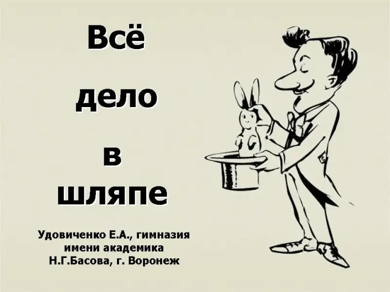 Шляпа - такой знакомый нам с детства, и такой загадочный предмет. Её можно надеть для красоты, а можно - для тепла; её можно надеть на голову и исчезнуть; ею можно накрыть предмет, а, сняв - взамен получить другой; её можно приподнять в знак приветствия, а можно надвинуть на глаза и идти, ничего не замечая.