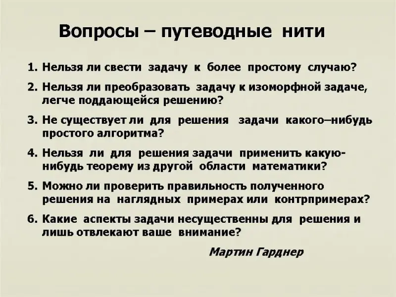 - Нельзя ли для решения задачи применить какую-нибудь теорему из другой области математики?