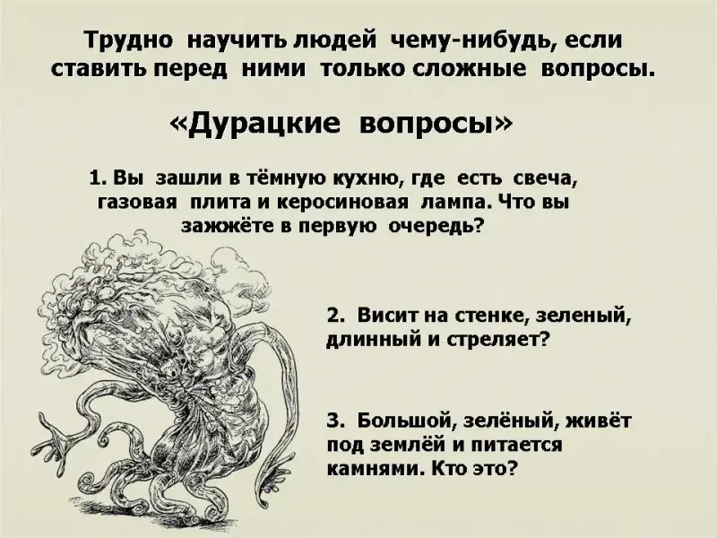 Трудно научить людей чему-нибудь, если ставить перед ними только сложные вопросы. А вопросы бывают разные.