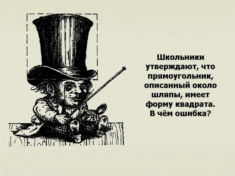 Школьники утверждают, что прямоугольник, описанный около шляпы, имеет форму квадрата. В чём ошибка? (Ошибки нет.)
