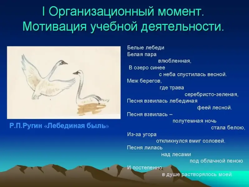 1 ученик - читает стихотворение Р.П.Ругина "Лебединая быль"