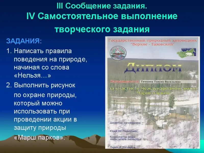 Просмотр презентации проекта: "Верхне-Тазовский государственный заповедник-краса и гордость Ямала"
