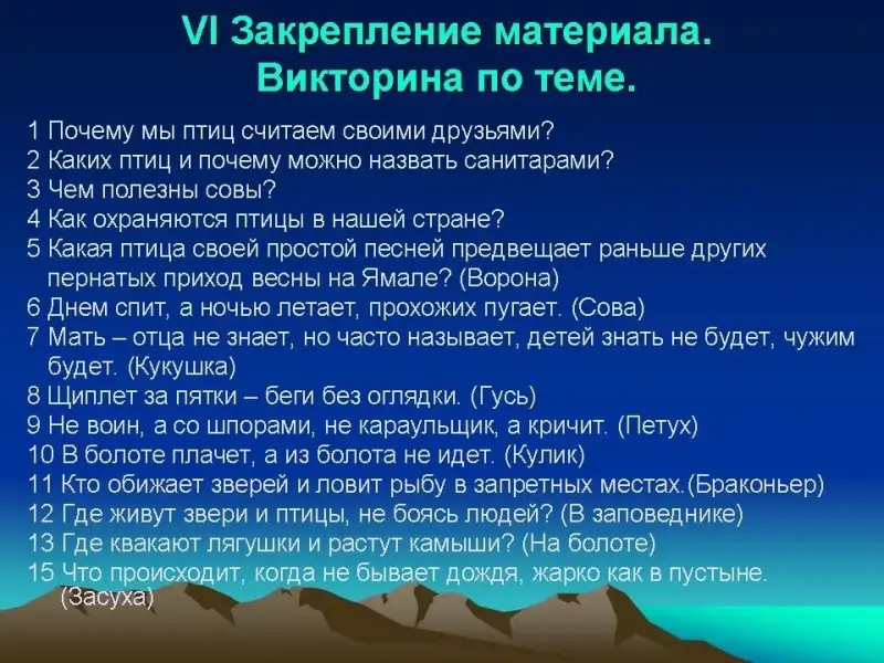 VI. Закрепление материала. Контроль ЗУН. Викторина по теме.