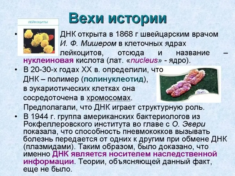 3. История открытия и изучения нуклеиновых кислот. - Доклад ученика <Приложение 1>.