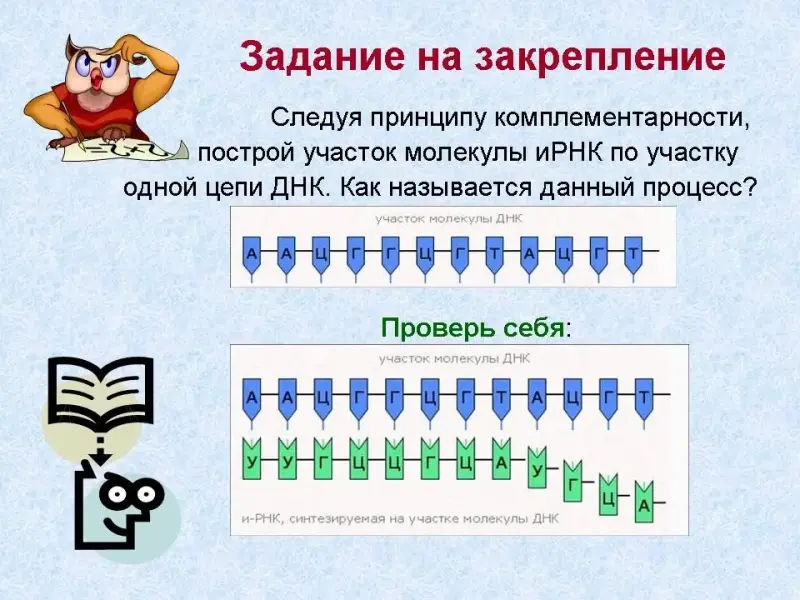 Задание (Слайд 29): постройте молекулу и-РНК, если участок молекулы ДНК имеет следующее строение: